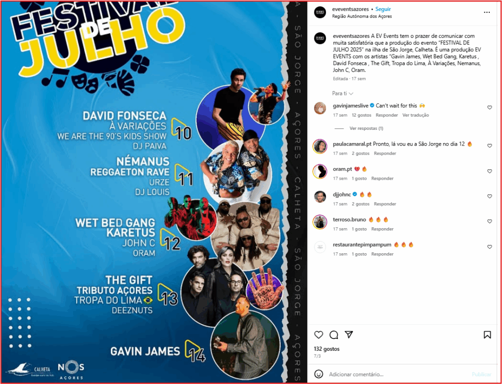 De resto, não se encontra site da empresa na Internet, mas nas sua página na rede social Instagram, a Excellent Vanguard apresenta-se como a organizadora de outros eventos nos Açores, designadamente o Graciosa Sound Fest e o Festas na Praia, na Terceira, e a ‘Festa do imigrante’, nas Flores.