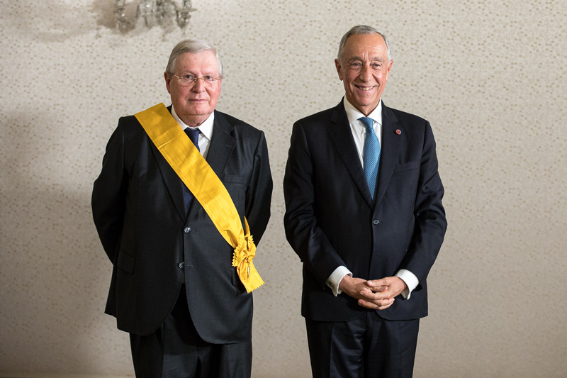 Sérvulo Correia, quando recebeu uma condecoração em 2018, ao lado de Marcelo Rebelo de Sousa. Foto: Presidência da República.
