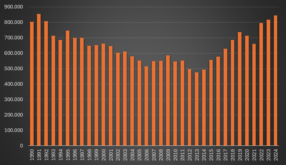 Com efeito, a evolução dos números, tanto das prestações como do número de beneficiários, não deixa margem para dúvidas quanto ao agravamento estrutural deste tipo de despesa pública: em apenas quatro anos registou-se um crescimento superior a 18%. Já o montante total subiu 15,5% no mesmo período: de 832,7 milhões de euros em 2020 para os actuais 962,1 milhões. Face ao período pré-pandémico, a subida é ainda mais acentuada: em 2019, o valor pago tinha sido de 692,6 milhões de euros, com 650.958 beneficiários.