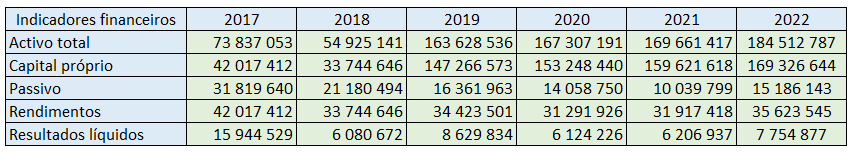 Indicadores financeiros (em euros) da Igreja Universal do Reino de Deus desde 2017 e agora até 2022. Fonte: Portal da Transparência dos Media / ERC