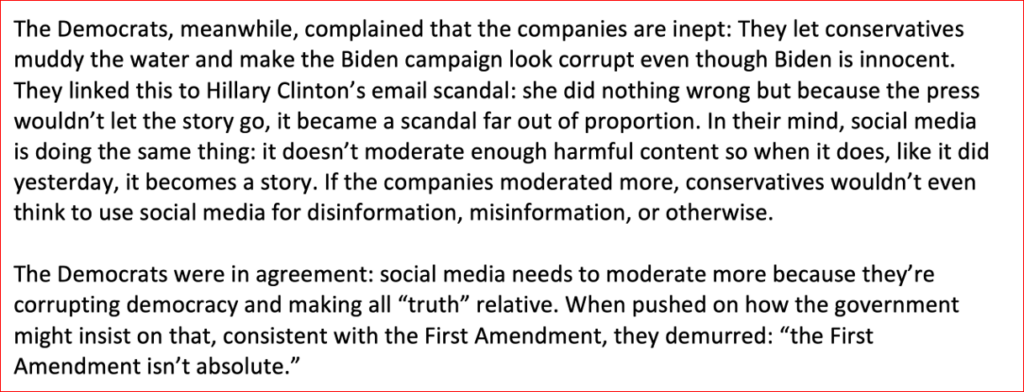 A carta de Szabo contém passagens arrepiantes que transmitem as atitudes dos legisladores democratas. Querem “mais” moderação e, quanto à Declaração de Direitos, “não é absoluta”