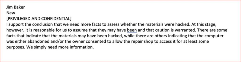 Ao que o ex-adjunto do administrador da área jurídica, Jim Baker, parece aconselhar a manter o curso, porque “a cautela é justificada”: