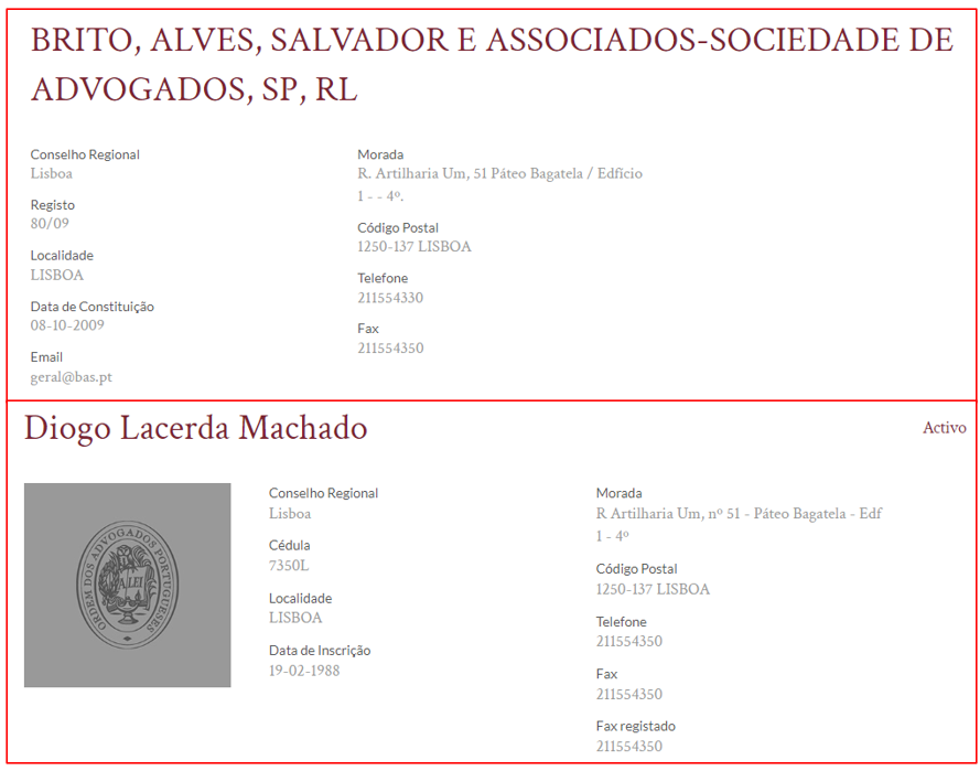 Recorde-se que é nas instalações da sociedade de advogados BAS que se mantém, ainda hoje, o endereço profissional de Diogo Lacerda Machado, o amigo de António Costa que está no epicentro da Operações Influencer. Isto apesar de a BAS ter negado já em 2016 não ter relações com Lacerda Machado, quando foram noticiados contratos ganhos a entidades associadas ao Ministério da Saúde, mas a ligação ao escritório manter-se quando implodiu a Operação Influencer. Desde Novembro do ano passado, as ligações formais mantêm-se de pedra e cal, tanto mais que o registo do endereço não é um pro forma; é uma obrigação imposta pela Ordem dos Advogados, tanto aos advogados como às sociedades.