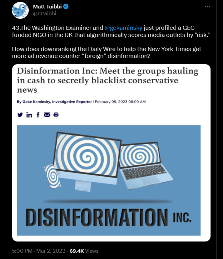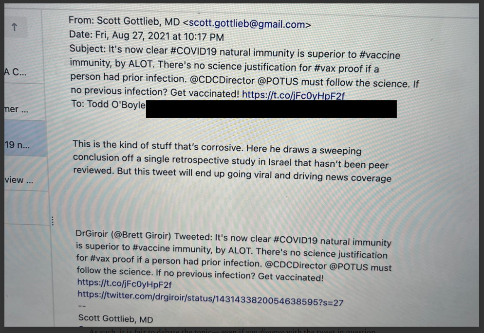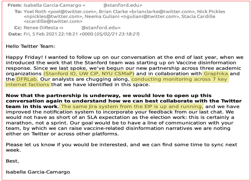 Um dos aspectos também relevantes desta nova revelação de Paul D. Thacker tem a ver com a promiscuidade entre política, negócios e redes sociais quando o assunto era a vacina contra a covid-19. O jornalista salienta que a funcionária do Twitter que primeiro alertou para o “perigo” do artigo de opinião de Tucker foi Elizabeth Busby, que ocupara o cargo de vice-secretária de imprensa nacional do líder da maioria no Senado, Chuck Schumer, um crítico frequente de Tucker Carlson.