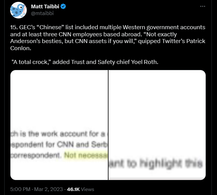 Depois, “no dia seguinte, funcionários do Twitter começaram a discutir o artigo de Tucker e a forma de limitar o seu impacte sem chamar a atenção para Tucker e sem criar ‘riscos políticos’ para o Twitter por estar a censurar diretamente a Fox News.”