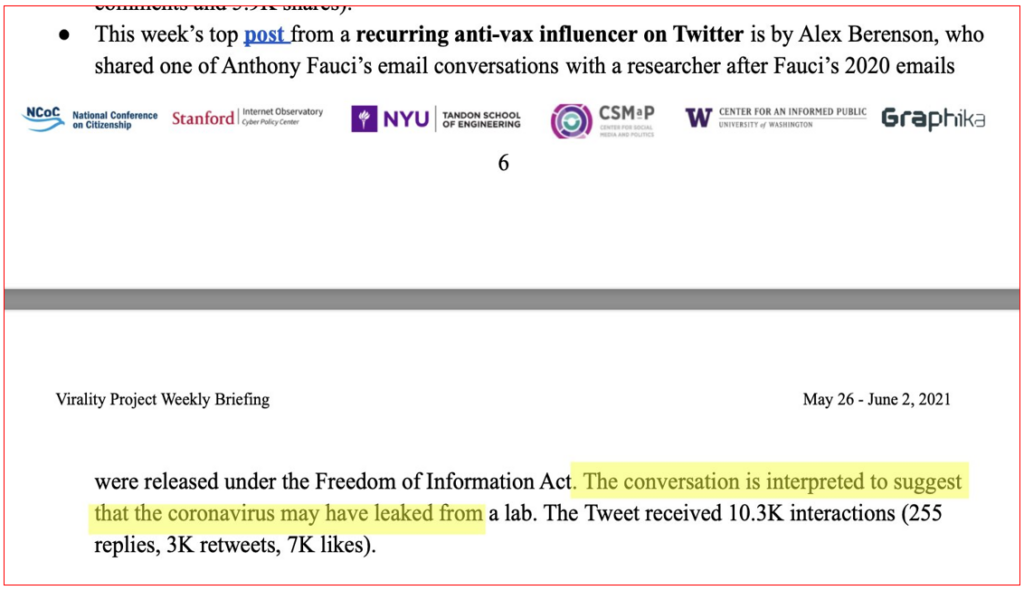 Ou seja, segundo Paul D. Thacker, “a OMS auto-censurou-se sobre as vacinas para ajudar o Twitter a censurar Tucker Carlson”.