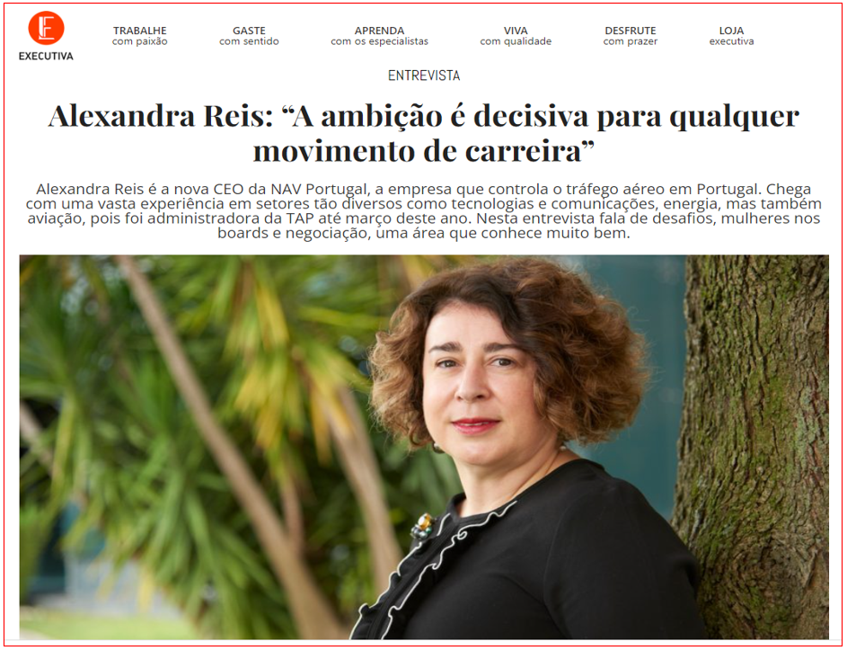 Alexandra Reis, em entrevista à revista digital Executiva, publicada no passado dia 1 de Setembro, como presidente da NAV.